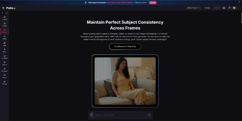 Beyond consistency, Pollo AI supports text-to-video, image-to-video, video conversion into other styles, photo-to-avatar animation, and even text-prompt based video editing. All of these make it a compelling centerpiece for professionals who want both control and speed in experimental or production workflows.