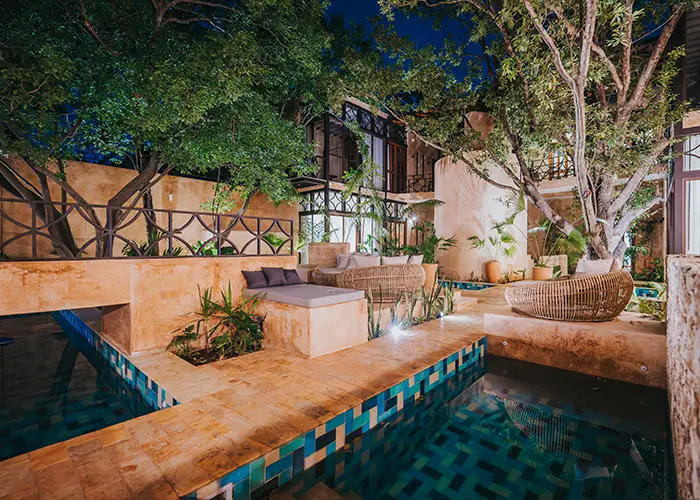 Led by architect Roger Escalante, the project was guided by a clear principle: protect the soul of the original house. Rather than imposing a bold new identity, the design preserves proportions, structural rhythms, and the domestic scale that define historic homes in Mérida. Contemporary volumes were carefully added around the central garden, expanding the hotel’s footprint without disrupting its sense of intimacy. Circulation unfolds as a thoughtful progression—vestibule to courtyard, shade to light, stillness to water—allowing guests to experience the architecture gradually, in tune with the climate.