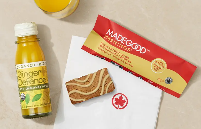 • Morning flights (before 10 a.m.): A favourite in homes across Canada, MadeGood Mornings Cinnamon Bun Soft Baked Oat Bars join the line-up of complimentary snacks onboard, alongside Canadian favourites TWIGZ Craft Pretzels and Leclerc’s Celebration Cookies.