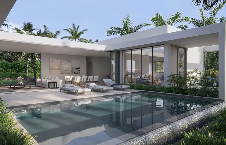Spanning 2,976 square feet, the single-story villa is centred around a private courtyard and features three luxurious bedrooms, a chef-grade kitchen, and open-plan living spaces. The centrepiece is an infinity pool, which invites residents to soak in the beauty of the tropics in complete privacy.