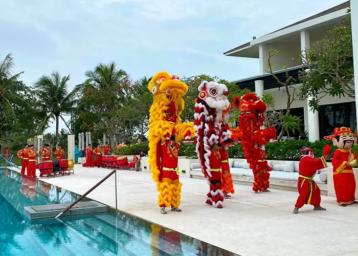 Afternoon offerings at the resort include daily Tet-themed afternoon tea in the elegant Living Room, while cultural highlights include Asian calligraphy sessions and a vibrant lion dance performance, symbolizing good fortune, protection and prosperity.