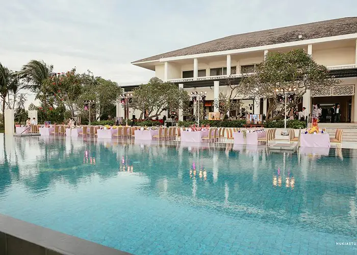 Azerai La Residence, Hue, situated in Vietnam’s former imperial capital, offers a historic yet vibrant setting for weddings with up to 300 guests. The hotel’s themed wedding packages, with poolside dinners overlooking the fabled Perfume River, are especially popular. Ceremonies and cocktail receptions are held at Le Gouverneur Bar Terrace (up to 200 guests) or on the wooden deck outside Le Spa (up to 300 guests).