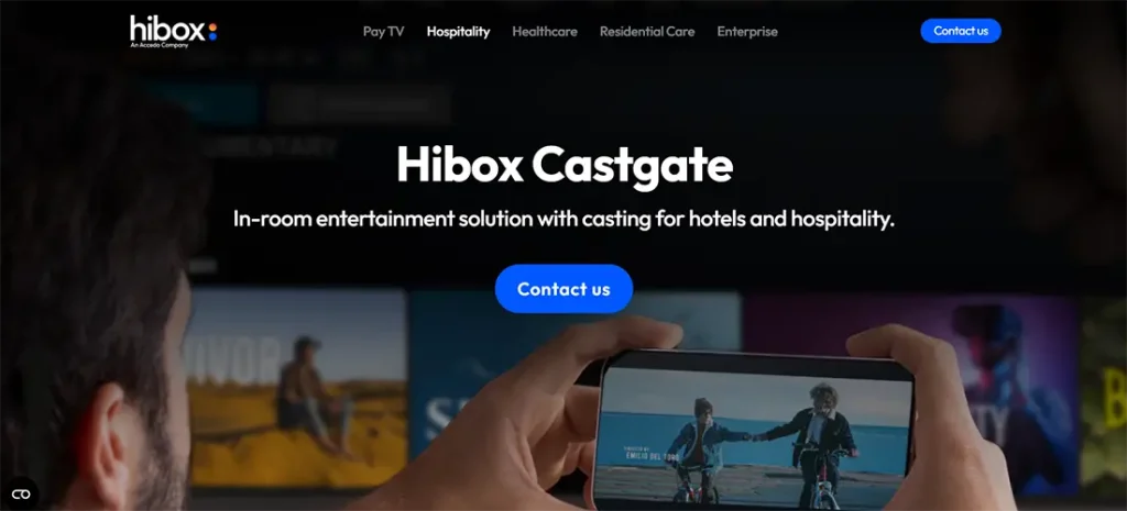 Hibox CastGate is a turnkey hospitality content-casting solution that enables guests to stream from their own devices to the in-room TV via QR code pairing, while hotels retain full control and security.
