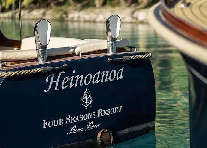 Guests of Four Seasons Resort Bora Bora arrive and depart aboard one of the Resort’s custom-crafted Andreyale Bateux Taxi (taxi boats). Sitting aboard these magnificent vessels, they take in the sights of the island on a stunning 20-minute cruise to the Resort, across the turquoise lagoon, and around majestic Mount Otemanu.