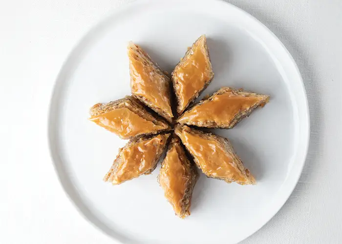 Traditionally made with 40 layers of phyllo dough, filled with pistachios or walnuts, and sweetened with syrup, baklava captures the essence of indulgence.