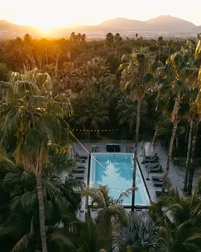Set across 25 acres in Ánimas Bajas, Acre is a rare blend of desert landscape and lush, tropical greenery. Palm groves sway above an organic farm, while winding paths connect a collection of thoughtfully designed accommodations. While the resort welcomes families in its haciendas and multi-bedroom villas, its elevated treehouse suites have quietly become one of Baja’s most sought-after adults-only stays.