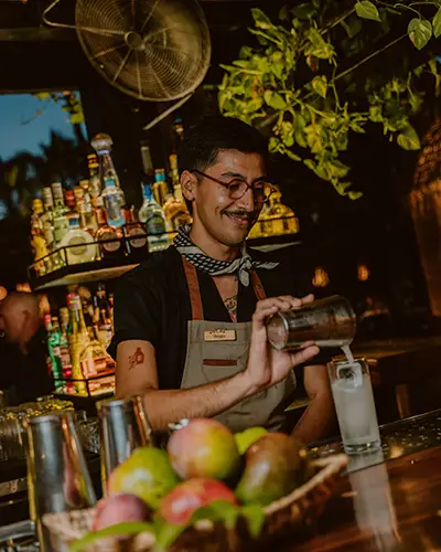 Beyond the treehouses, Acre’s culinary experience is a destination in itself. The Acre Restaurant & Cocktail Bar, recognized with a Michelin Green Star, showcases a farm-to-table philosophy rooted in sustainability. Much of what appears on the menu is grown right on the property, resulting in vibrant, seasonal dishes that reflect both the land and the region. As evening falls, the restaurant transforms into a magical setting, with lanterns glowing beneath the palms and craft cocktails flowing.