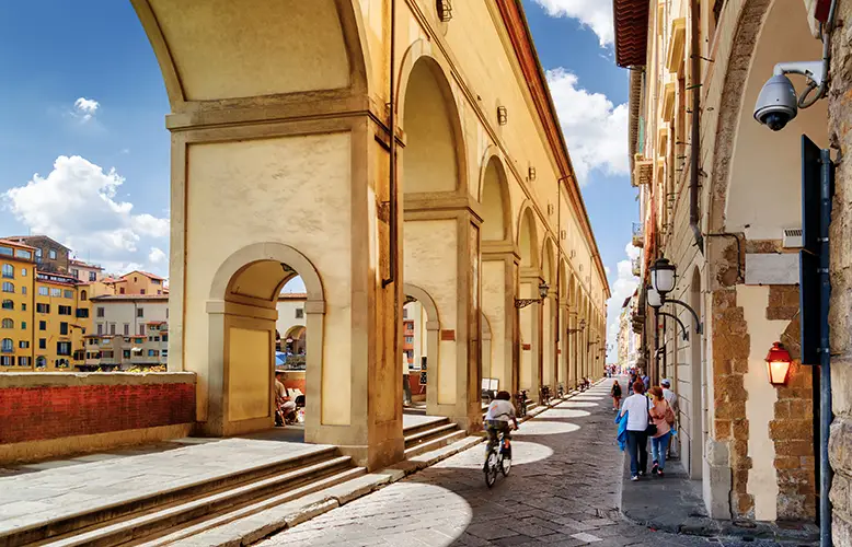 The Vasari Corridor, built in 1565 by Giorgio Vasari for Cosimo I de’ Medici, is an elevated passageway that connects Palazzo Vecchio to Palazzo Pitti, passing through the Uffizi Gallery and over the Ponte Vecchio. Once reserved for the private use of the Medici family, the corridor offers a unique window into Florence’s political and artistic past. After years of meticulous restoration, it has now reopened to the public—offering a rare opportunity to walk this secret route above the city.