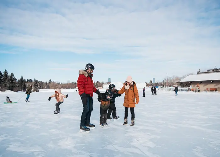 The season continues with the Silver Skate Festival, taking place February 6–16, 2026, in Laurier Park. Celebrating its 35th anniversary, Edmonton’s longest-running winter festival combines arts, culture, recreation, and sport. Visitors can skate along the park’s frozen pathways, view the Snow Sculpture Garden, explore the Folk Trail, and enjoy a full schedule of outdoor programming at this free ten-day event.