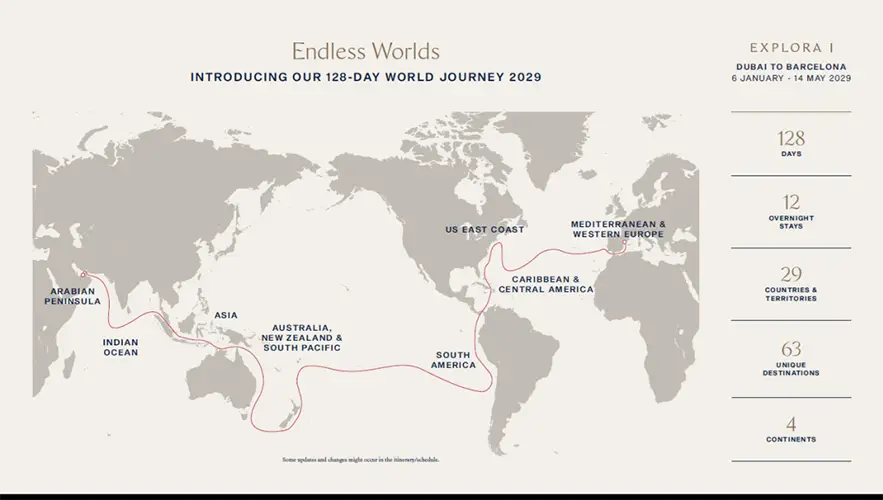 Explora Journeys, the luxury ocean travel brand of the MSC Group, today unveils Endless Worlds, its highly anticipated Inaugural World Journey taking place aboard EXPLORA I. Spanning 128 days from January 6 to May 14, 2029, this extraordinary east-to-west Journey is the brand’s first opportunity for guests to explore the globe through one continuous Journey across four continents, 29 countries and territories, and 63 unique destinations.