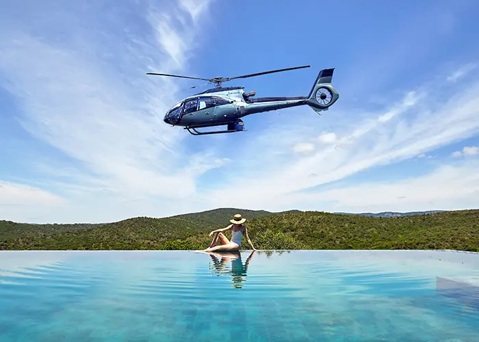 At the heart of the Royal Thanda Club sits the Five Bedroom Grand Royal Residence, known locally as Villa Thandawena—one of Africa’s most extraordinary private villas. What truly sets it apart is exclusive on-demand access to a private Airbus H130 B4 helicopter, a first for the continent. Guests can arrive in style by following the dramatic Indian Ocean coastline and soaring above one of Africa’s earliest protected reserves, landing directly on the villa’s private helipad. The aircraft also makes it effortless to explore the scenic beauty of KwaZulu-Natal from the sky.