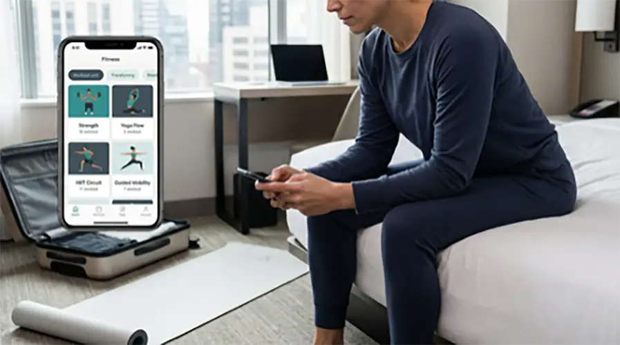 Home Wellness Travel 7 Hotel-Room Workout Apps That Actually Work When the Gym Is Nowhere...
