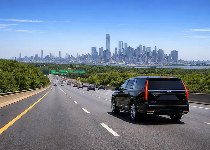 A Newark airport car service sedan runs from around $170 flat as of early 2026 for the EWR to Manhattan route, tolls included. SUVs and vans are available for groups or extra luggage. The rate doesn’t move with surge pricing and the driver doesn’t cancel.