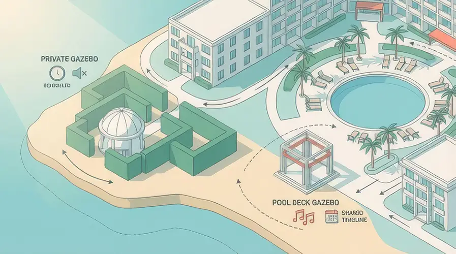 Request the run-of-show: ceremony start, cocktail hour, reception and the buffer for décor flips. If you spot even a 30-minute overlap on the beachfront terrace, negotiate extra exclusivity or an alternate venue in writing.