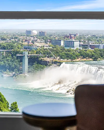 The hotel has 42 floors and 611 new premium-designed rooms and suites which offer a refreshed and modernized guest experience featuring contemporary furnishings and lighting. Each room offers spacious accommodations and sweeping views of Niagara Falls or the vibrant city skyline. Many rooms overlook the iconic Horseshoe and American Falls, allowing guests to visually take in the mist rising from the water and the nightly illumination that lights up the Falls after sunset. Guests can also enjoy a large flat-screen television, Nespresso machine, beverage station, mini fridge, and thoughtfully selected in-room amenities designed for comfort and convenience. Suites provide additional space with separate living and sleeping areas, along with elevated amenities for an enhanced stay experience.