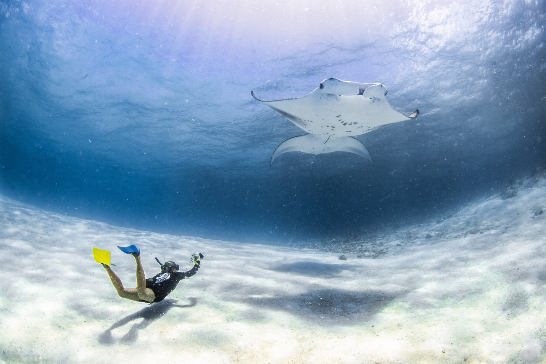 For certified divers, options are available to ensure all guests find their individual way of interacting with manta rays. Dedicated dive spots are in the area around the resort that allows divers to observe the natural manta ray ‘spa’, known as cleaning stations, showcasing the incredible symbiosis of marine life in the Maldives.