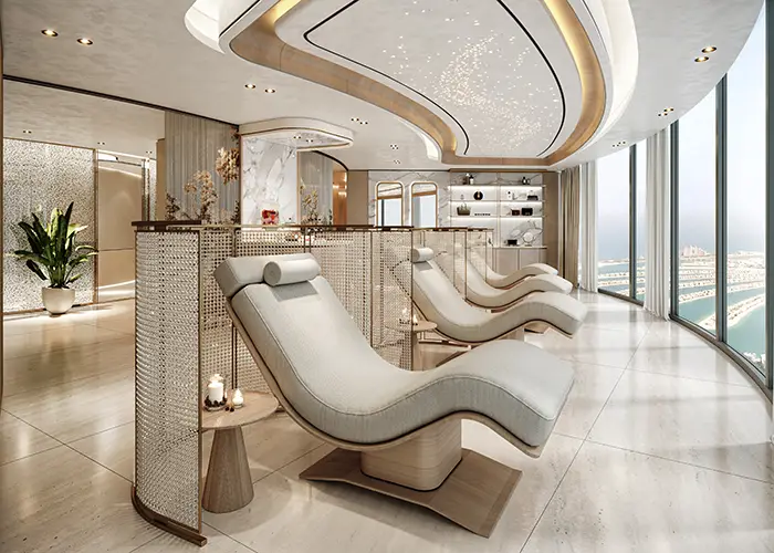 Wellness and lifestyle experiences are equally elevated. A dedicated spa on Level 61, scheduled to open in February 2026, will blend advanced beauty treatments with time-honoured rituals for deeply restorative experiences. The 24-hour fitness centre offers state-of-the-art equipment alongside inspiring skyline views. Guests also enjoy privileged access to Soluna Beach Club on Palm Jumeirah, where a private pool and pristine beachfront provide a relaxed coastal escape. Families are thoughtfully catered to with a Splash Pad, Kids Club, child-friendly menus, and tailored welcome amenities. Business travellers and Executive Club guests can retreat to Nest on Level 16, offering refreshments, meeting spaces, advanced technology, and attentive personalised service in a stylish lounge setting.