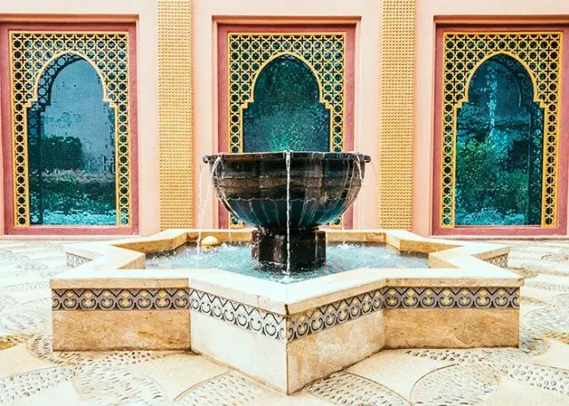 If searching for a true luxury hotel in Marrakech, you will find that this architectural marriage creates an atmosphere of timeless colonial elegance. Its interior has large colonnades, chequerboard marble floors, and majestic high ceilings. These features offer a refreshing contrast to the dense, organic textures of traditional Moroccan buildings.