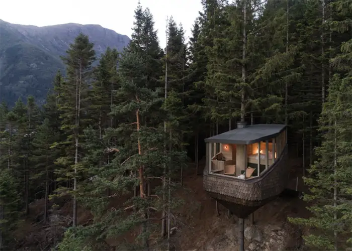 The itinerary opens in Oslo, a walkable capital where art museums sit alongside deep forest, with a guided walk through the city led by a local urban planner that combines photography with an insider’s perspective on how Oslo is designed and lived in. Then, it’s on to the countryside, where couples collect a rental car and self-drive into the alpine terrain of Geilo, a mountain village on the high plateau between eastern and western Norway. A guided mountain hike, sauna ritual, and cheese-and-craftsmanship session with a local producer set the pace for the journey ahead. A treehouse retreat high above the Hardangerfjord follows, anchored by a glacier-side cider lunch and local cider tasting. The journey continues west to Bekkjarvik, a small island settlement in the Austevoll archipelago, historically a trading post for the offshore fishing fleet, where a cooking class, private boat tour, and a local hike round out days shaped by one of Norway’s most celebrated chefs. A brief stop in Bergen marks a threshold of activity before the itinerary turns north.