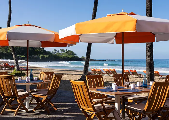 Meanwhile, the resort’s signature restaurant, Manta, has introduced a renewed hyper garden-to-table dinner menu rooted in locally sourced, seasonal ingredients from Hawai‘i Island farmers, fishermen, ranchers, and the on-site Ulu Garden. Set high above Kauna‘oa Bay, the restaurant continues to showcase a Kohala Coast–inspired Pacific Rim culinary perspective.