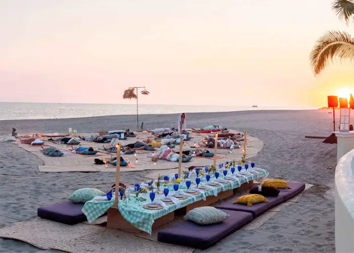 After establishing this connection with the earth element, the tour flows naturally toward water. Guests continue to the sand and sea at the nearby Tau Beach Club, where grounding takes on a new dimension. The warmth of the sand, the rhythmic movement of the waves, and the expansive Banderas Bay horizon provide a powerful sensory environment for reflection and renewal. Guests may sip a refreshing drink, enjoy light coastal bites, or simply sit with their feet in the sand—an effortless extension of the grounding practice. For those who choose to wade into the water, the sea offers its own therapeutic energy, amplifying relaxation and reinforcing the sense of being fully present.