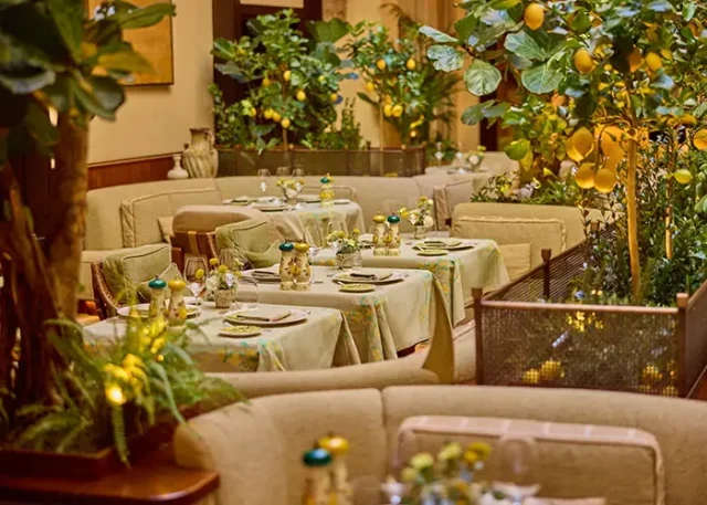 A worldwide and long-standing symbol of the Caprese spirit, Paolino Capri brings to Rome the timeless atmosphere of its iconic lemon grove. At La Minerva Bar, located in the iconic lobby of Orient Express La Minerva, the signature yellow and green hues of the island and therestaurant take center stage, transforming the space, decorated for the occasion with evocative lemon trees.