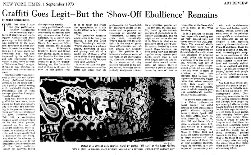 After the immersive moment comes a major highlight of Origins, the presentation of original paintings by United Graffiti Artists (UGA) members PHASE2, FLINT 707, SNAKE 1, and COCO144, that have not been seen since their debut in 1973, marking one of the first moments graffiti entered the gallery setting. “Tracking down rare artifacts like this was always part of our mission so that the true history of graffiti can be shared in the most authentic way,” said Allison Freidin, co-founder of the Museum of Graffiti.