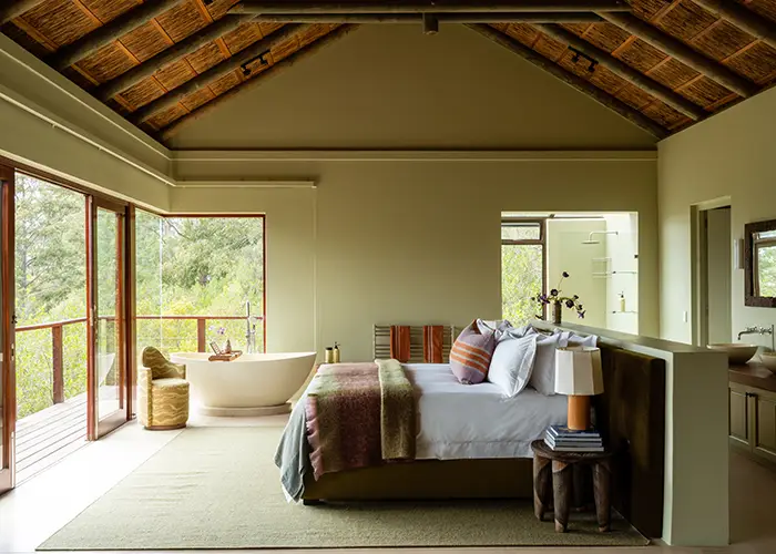 The interiors reflect a philosophy of calm restraint. Shared spaces and guest suites are marked by a refined minimalism that encourages rest and reflection. Design was entrusted to London-based Studio Ashby, led by Sophie Ashby, whose South African roots inform her globally celebrated aesthetic. Raised between South Africa and the UK, Ashby brings a nuanced cultural sensibility to the project, blending international refinement with local resonance.