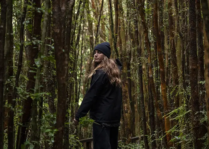 That’s where we met Nalani “Nala” Ivelic, a Chilean biologist, scientific diver, and the lodge’s steward in many ways. She oversees most around here, but her perspective stretches far beyond Pumalín. For Nala, this place is her living laboratory, and a rare chance to show that Patagonia is so much more than what meets the eye. As Nala took us on her beloved trails, she talked to us about this cooler jungle, stating “this is a place where everywhere you look, there’s life. And hardly any research has been done right here on our doorstep.” She was constantly urging us to look closer here.