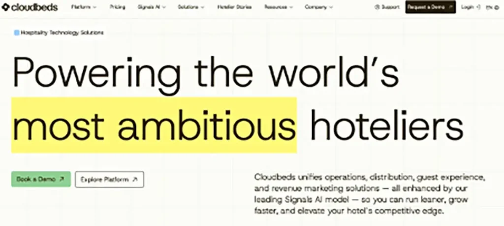 Cloudbeds offers a unified hospitality platform that combines property management, channel management, booking engines, and revenue management tools in one solution. The platform is designed for independent hotels, hostels, and vacation rentals looking for an affordable, easy-to-use system.