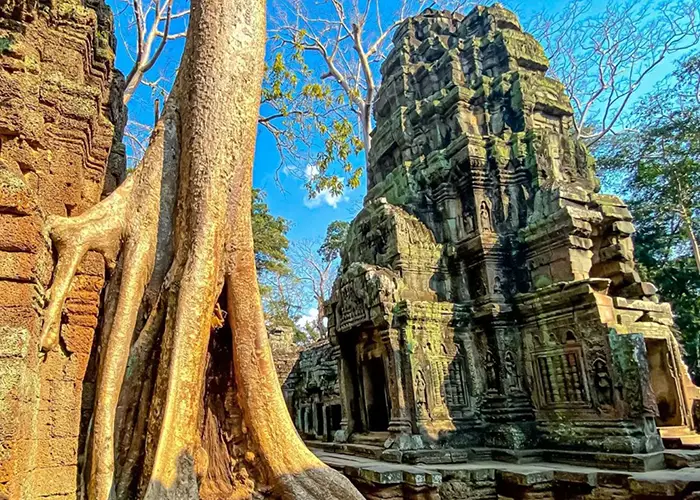 The iconic tree roots weaving through temple ruins evoke the power of nature reclaiming history. It is an eerie yet beautiful sight that leaves visitors awe-struck.