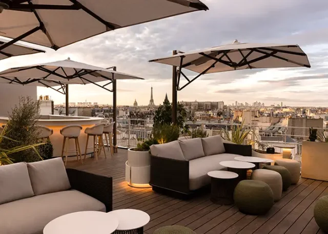 As the days grow warmer, the hotel’s outdoor spaces become destinations in their own right. While the rooftop terrace evolves into one of the Left Bank’s most sought-after summer bars, the peaceful courtyard garden offers a quieter retreat—perfect for a morning espresso, a midday pause, or evening drinks and dinner beneath the open sky.